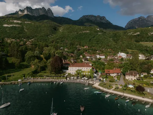 On the tranquil shore of Lake Annecy in Talloires, Cottage Bise is a 4‑star hotel‑restaurant known for its lakeside elegance and serene atmosphere. With gourmet dining, spa and wellness facilities, and both indoor and outdoor spaces, it offers a romantic, intimate setting for weddings bathed in natural beauty.